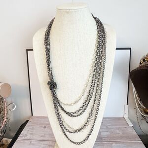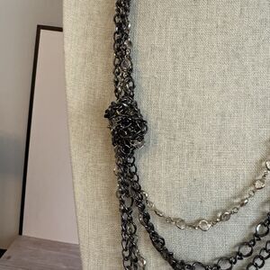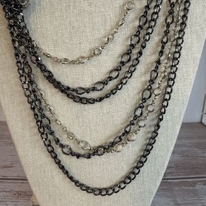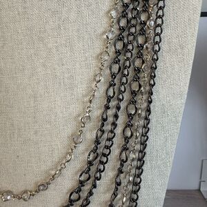 Chico’s Layered Knotted Chain Bezel Set Crystal Draped Statement Necklace