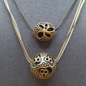 Chico’s Layered Pendant Necklace Black Enamel Beads Multistrand Chains