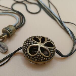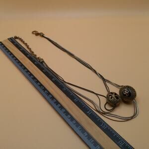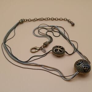 This is a beautiful Chico’s multistrand necklace featuring two layered pendants with intricate detailing.
