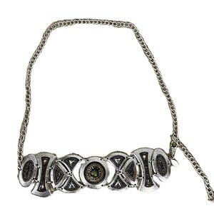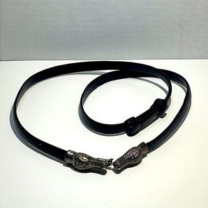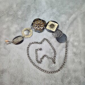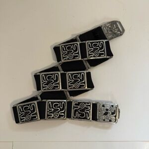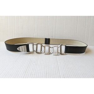 Chico's Leather Silver Black Boho Stretchy Y2K Artsy eclectic Sz Medium has wear