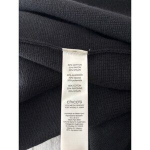 Chicos Leather Trim open front knit Soft Sweater Vest Black Large Long