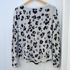 Chico’s Leopard Animal Print Soft Blue Cream Black Knit Pullover Sweater Size 0