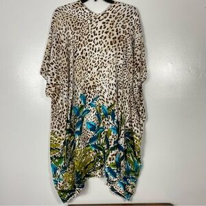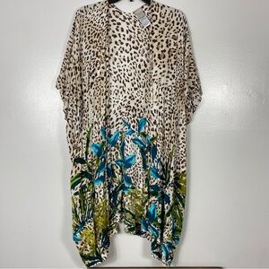 Chicos Leopard & Palms print floral Kimono Kaftan cover up S-XXL