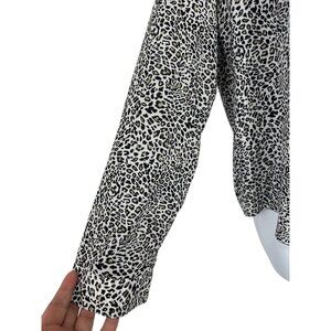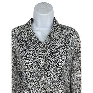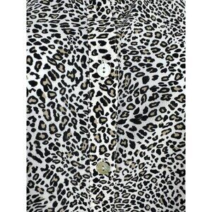 Chico's Leopard Print Button-Up Roll Tab Sleeve Tie Hem Blouse Womens Sz 1 US M