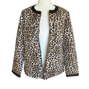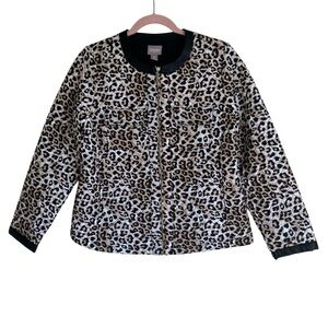 Chico’s Leopard Print Jacket Quilted Fall Jacket Lightweight Zip Up Sz 0 /Small