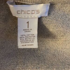 Chicos Leopard Print Knit Cardigan Sweater Jacket Short Sleeve Metallic Size 1