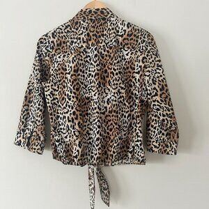 Chicos Leopard Print No-Iron Button-Up Shirt With Tie Hem Womens Size 0