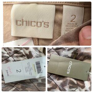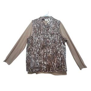 Chicos Leopard Print Puffer Vest with top Womens Large Quilted Classic Preppy