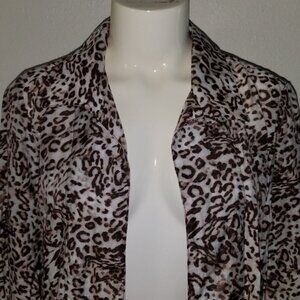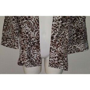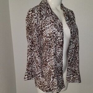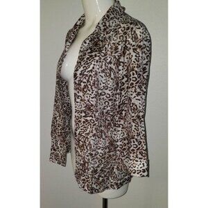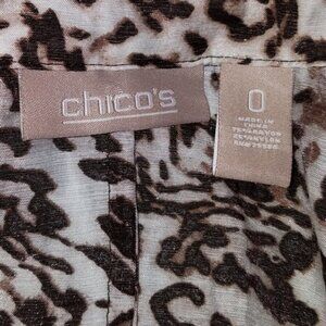 Chico's Leopard Print Shirt Top Cardigan Size 0 Open Front 3/4 Sleeves Cheetah