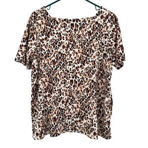 Chico’s Leopard Print Square Neck Short Sleeve Top Women’s Sz L Petite (2P)