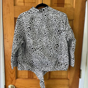 Chicos Leopard Print Tie Front Wrinkle Resistant Blouse-size 2 100 % Cotton NWOT