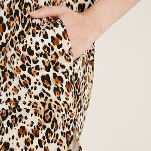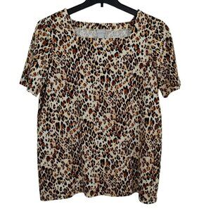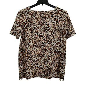 Chico's Leopard Print Tunic Top Sz Petite Large Short Sleeve Square Neck Pockets