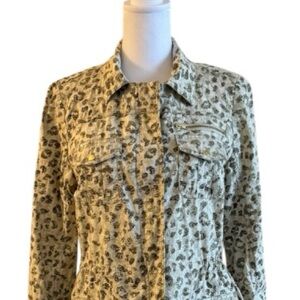Chico’s Leopard Print Utility Jacket Size 0 Animal Print Button Front