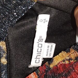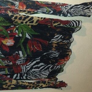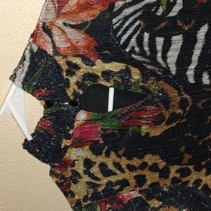 Chico's Leopard Zebra Floral Print Mock Neck Metallic Crinkle Top 0/S. Great condition