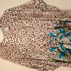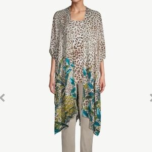 Chico's Leopard print floral Ruana Long Line Wrap Kimono NWOT beach one Size