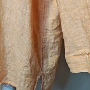 Chico's Leslie Linen Tunic Top Peach Size 3 (XL 16) Button V-Neck Crest Pockets