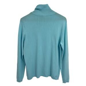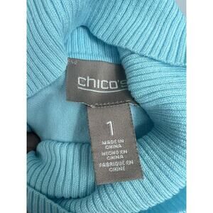 Chicos Light Blue Classic Solid Turtleneck Lightweight Sweater Medium (1)