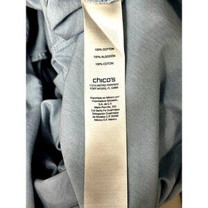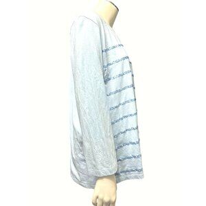 Chicos Light Blue Green Sequin Striped Long Sleeve Top Blouse Size 3