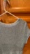 Chico’s light blue metallic knit top featuring a cream layered hem. Perfect for casual wear.