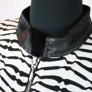 Chico's zip front light jacket top black and white stripes