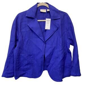 Chico's Light Weight Linen Crossover Jacket Blazer Pockets 3/4 Sleeve Liberty Purple