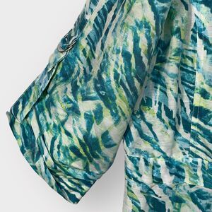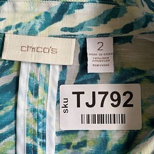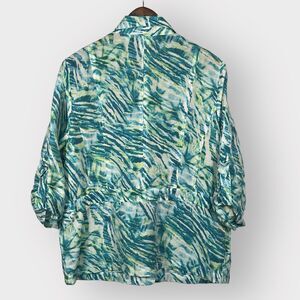 Chico's Lightweight Button Front Jacket Women Size L (2) Green Printed Linen