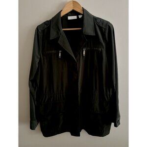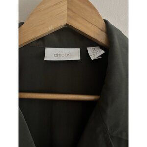 Chicos Lightweight Green Button Down Utility Jacket Drawstring Waist Large