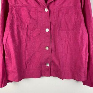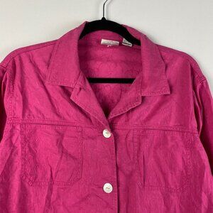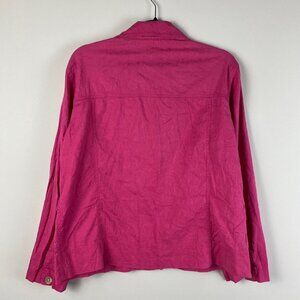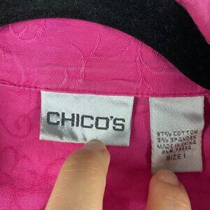 Chicos Lightweight Jacket Womens 1 US Medium Pink Embroidered Button Up Cotton