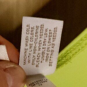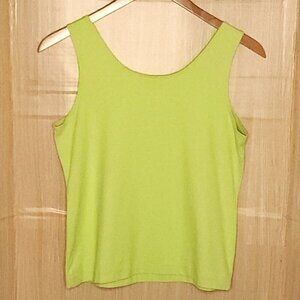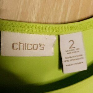 Chico’s lime green stretchy fitted tank top large. Gently used condition. Measurements are: 23” from shoulder to hem, and 19” from armpit to armpit.