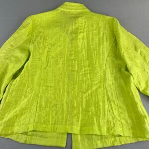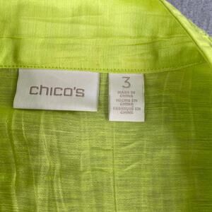 Chico's Lime Green Linen Blend Crinkle Embroidered Open Jacket Women's 3 (XL/16)