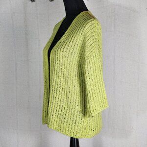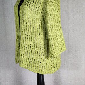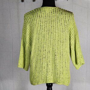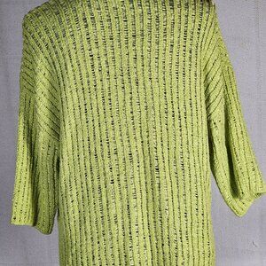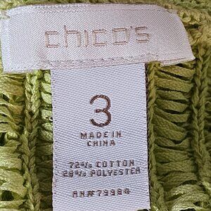 Chico's Lime Open Cotton Poly Open Weave 3/4 Sleeve Sweater Chico Sz 3 US XL 16