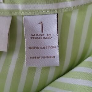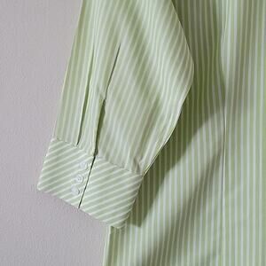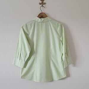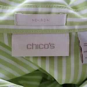Chico's Lime/White Striped 3/4 Sleeve No Iron Button Front Blouse Size Medium M