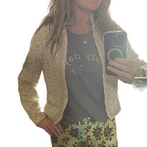 Chico’s Linen Beige Eyelet Open Jacket Size Medium 8