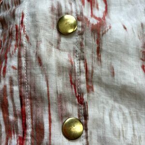 Chicos Linen Blazer Jacket Womens Small Tan Orange Snap Buttons Watercolor Work