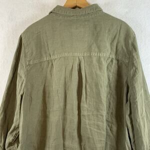 Chicos Linen Blend Button Top Sz S Olive Green Coastal Beachy Travel Safari