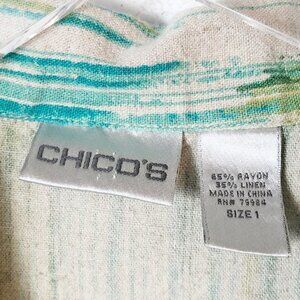 Chico's Linen Blend Green Blue & Cream Striped Button Crop Jacket Women's Size 1