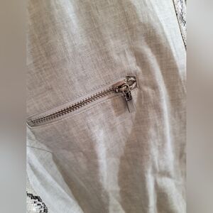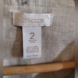 Chico's Linen Blend Jacket with Snake Trim. Neutral color and perfect for Spring and Summer. Open front. Zip pockets. Great condition, no stains or holes.