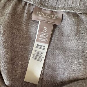 Chicos Linen Blend Pull On Ankle Pants Women's Size 3 XL Gray Elastic Waist Back
