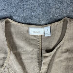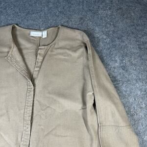 Chico's Linen Blend Snap Up Shirt Jacket Shacket Tan Neutral Lagenlook Oversized