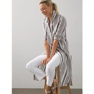 Chico's Linen Blend Stripe Maxi Shirt Size 1 (8-10)