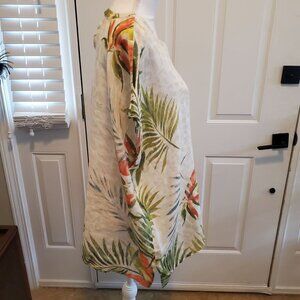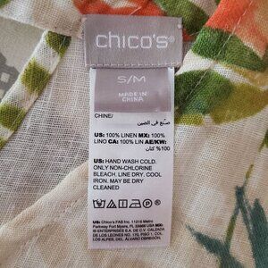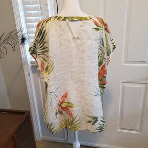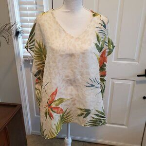 Chico's Linen Blouse Poncho Size S/M Beige Tropical Floral Palm Hawaiian Beach