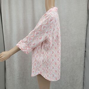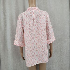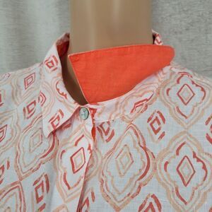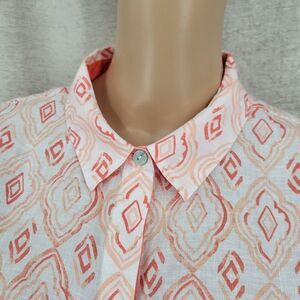Chico's Linen Blouse White with Coral Geometric Patterned Women's Top NEW