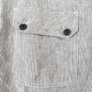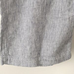 These Chico's cargo pants in a sleek gray and white pin stripes offer a relaxed or wide leg cut and are crafted from a 100% linen fabric, making them perfect for warm-weather wear. The versatile design allows for easy dressing up or down, ensuring comfort and style for any occasion.