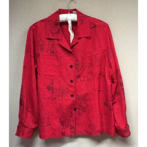 Beautiful Orange & White Linen Top! Wood buttons, and great Hawaiian design! Like new! Measurements are in the photos 😀 Chico's size "1" is an 8.