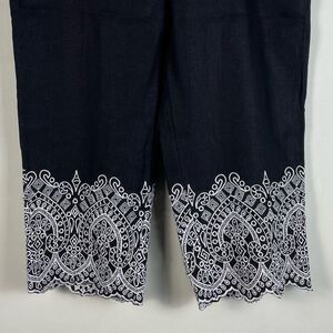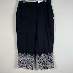 Chico's Linen Embroidered Eyelet Straight Leg Pull On Pants Size 14 / 2.5 Cropped NEW