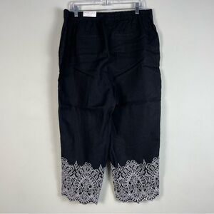 Chico's Linen Embroidered Eyelet Straight Leg Pull On Pants Size 14 Cropped NEW