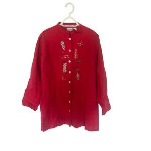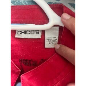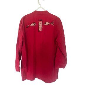 Chicos Linen Embroidered Red Button Up Shirt Size L