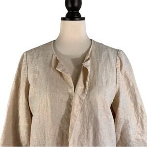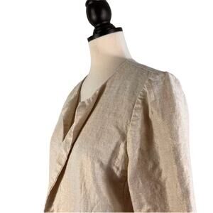 Chico's Linen Gold Shimmer and Beige Open Front Blazer Jacket Size 1 Medium
