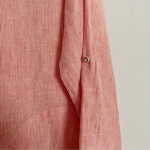 Chico's Linen Longline Button Down Striped Tunic Top Lagenlook Beachy