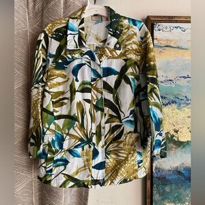 Chico's Linen Matching Set Size 2R L Tropical Print Jacket And Straight Pants